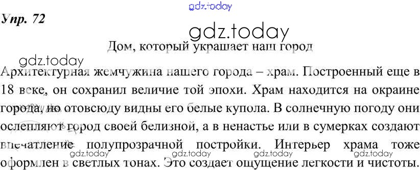 На страницах сайта gdz.today вы найдете учебный и вспомогательный материал, направленный на улучшения знаний школьной программы. ГДЗ - онлайн мир знаний Решение к упражнениям 72 Учебнику по Русскому языку для 8 класса Тростенцова, Ладыженская Просвещение 2014