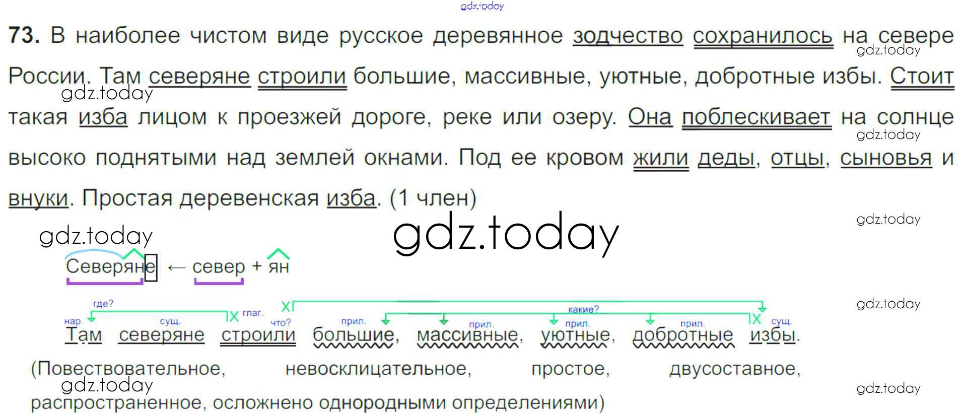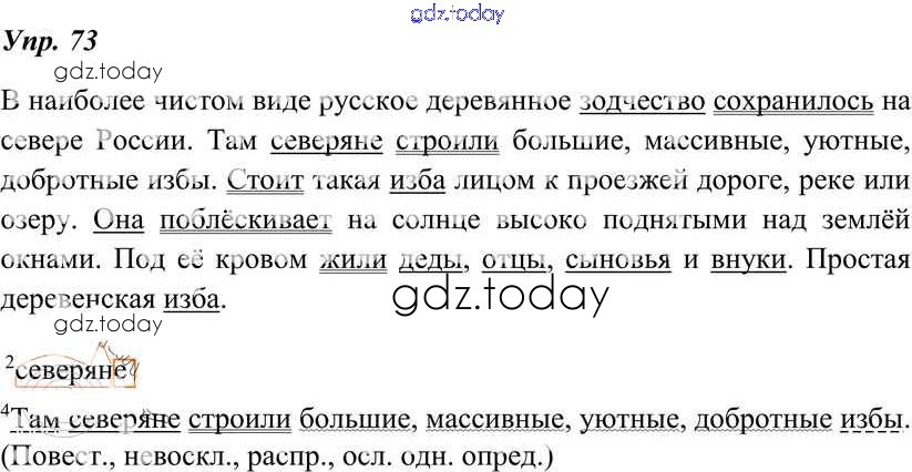 На страницах сайта gdz.today вы найдете учебный и вспомогательный материал, направленный на улучшения знаний школьной программы. ГДЗ - онлайн мир знаний Решение к упражнениям 73 Учебнику по Русскому языку для 8 класса Тростенцова, Ладыженская Просвещение 2014