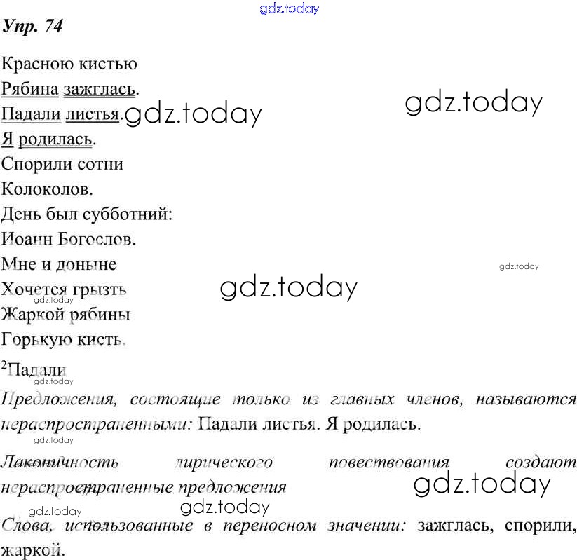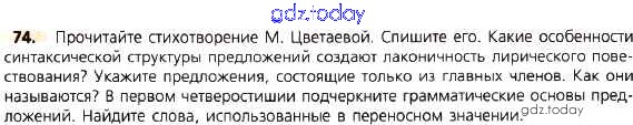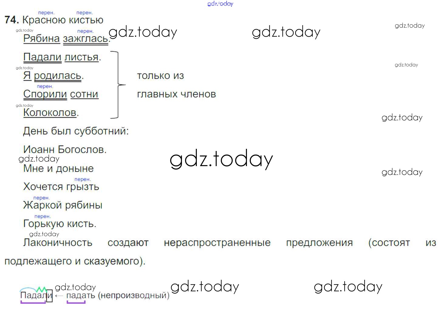 На страницах сайта gdz.today вы найдете учебный и вспомогательный материал, направленный на улучшения знаний школьной программы. ГДЗ - онлайн мир знаний Решение к упражнениям 74 Учебнику по Русскому языку для 8 класса Тростенцова, Ладыженская Просвещение 2014