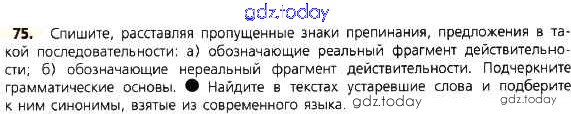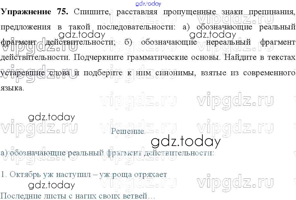 Ответы к Решение к упражнениям 75 Учебнику по Русскому языку для 8 класса Тростенцова, Ладыженская Просвещение 2014