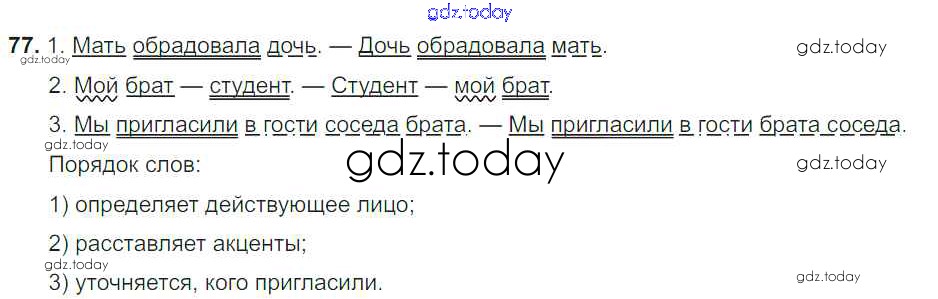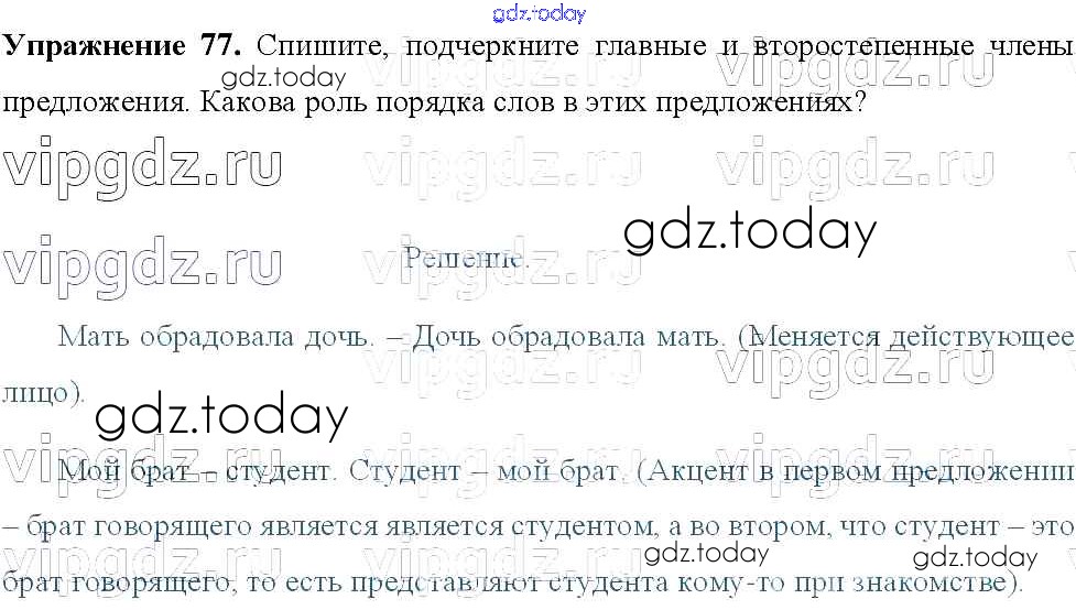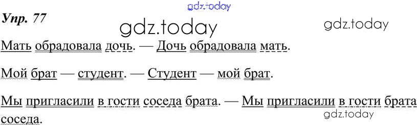 На страницах сайта gdz.today вы найдете учебный и вспомогательный материал, направленный на улучшения знаний школьной программы. ГДЗ - онлайн мир знаний Решение к упражнениям 77 Учебнику по Русскому языку для 8 класса Тростенцова, Ладыженская Просвещение 2014