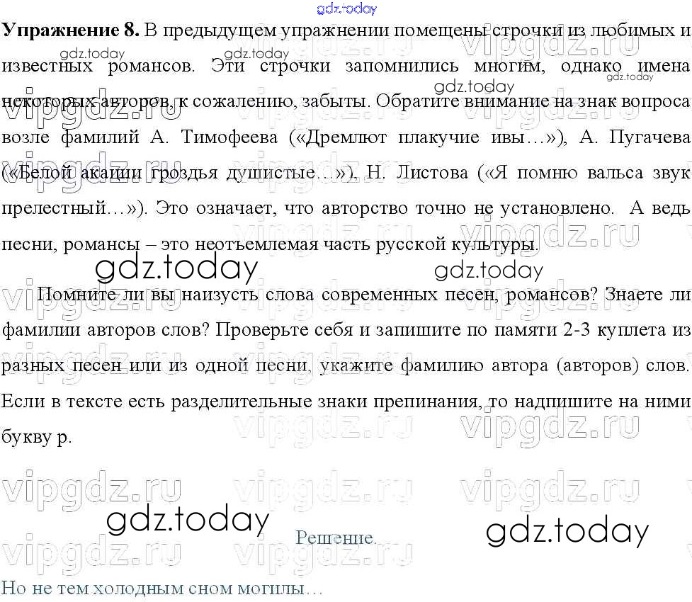 Ответы к Решение к упражнениям 8 Учебнику по Русскому языку для 8 класса Тростенцова, Ладыженская Просвещение 2014