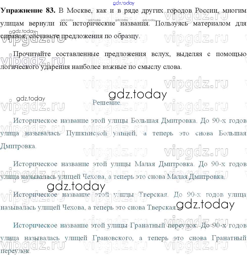 На страницах сайта gdz.today вы найдете учебный и вспомогательный материал, направленный на улучшения знаний школьной программы. ГДЗ - онлайн мир знаний Решение к упражнениям 83 Учебнику по Русскому языку для 8 класса Тростенцова, Ладыженская Просвещение 2014