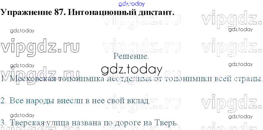 Ответы к Решение к упражнениям 87 Учебнику по Русскому языку для 8 класса Тростенцова, Ладыженская Просвещение 2014