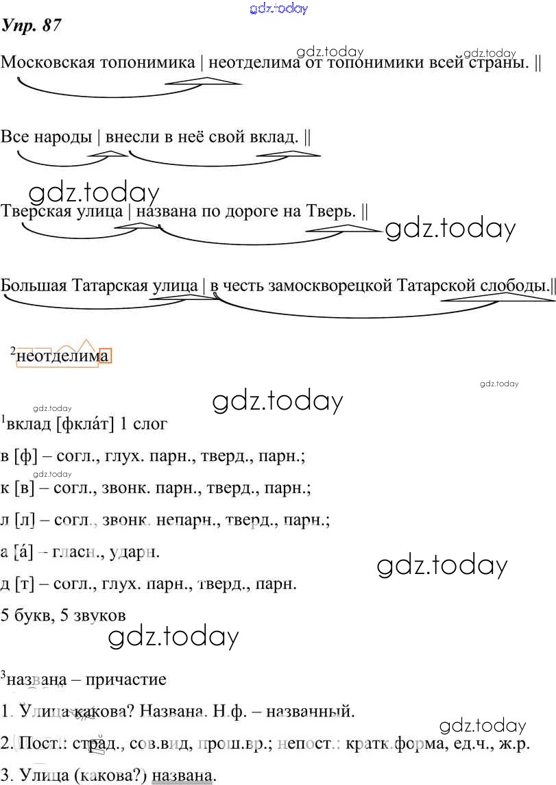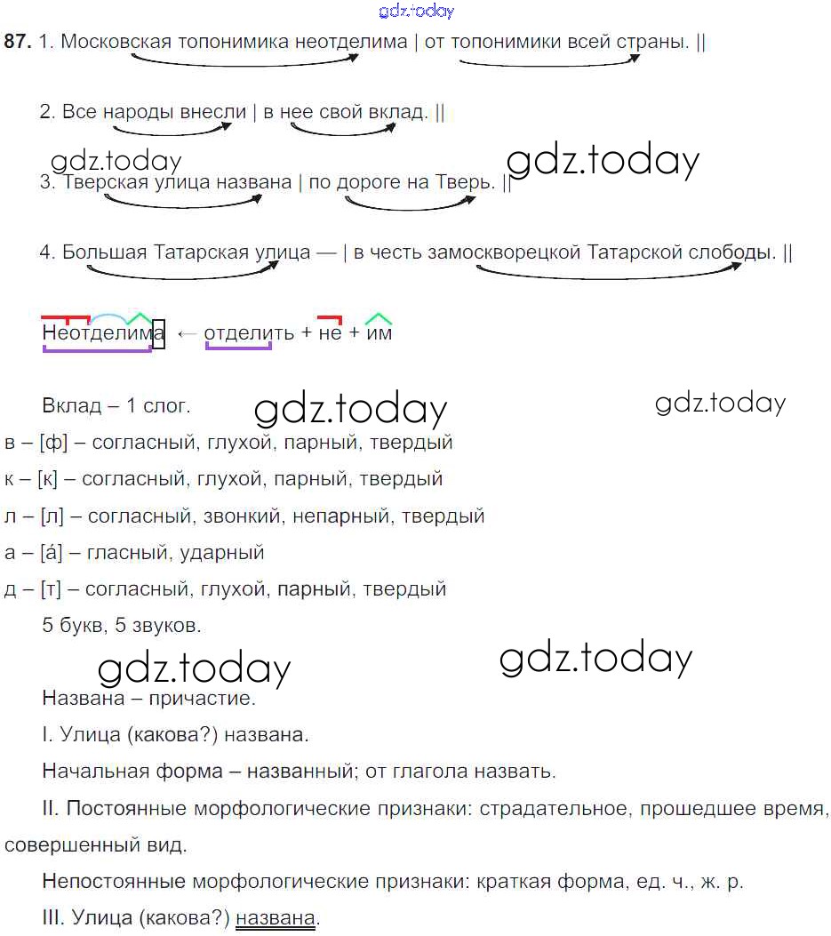На страницах сайта gdz.today вы найдете учебный и вспомогательный материал, направленный на улучшения знаний школьной программы. ГДЗ - онлайн мир знаний Решение к упражнениям 87 Учебнику по Русскому языку для 8 класса Тростенцова, Ладыженская Просвещение 2014