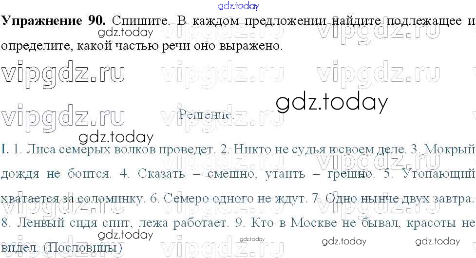 На страницах сайта gdz.today вы найдете учебный и вспомогательный материал, направленный на улучшения знаний школьной программы. ГДЗ - онлайн мир знаний Решение к упражнениям 90 Учебнику по Русскому языку для 8 класса Тростенцова, Ладыженская Просвещение 2014
