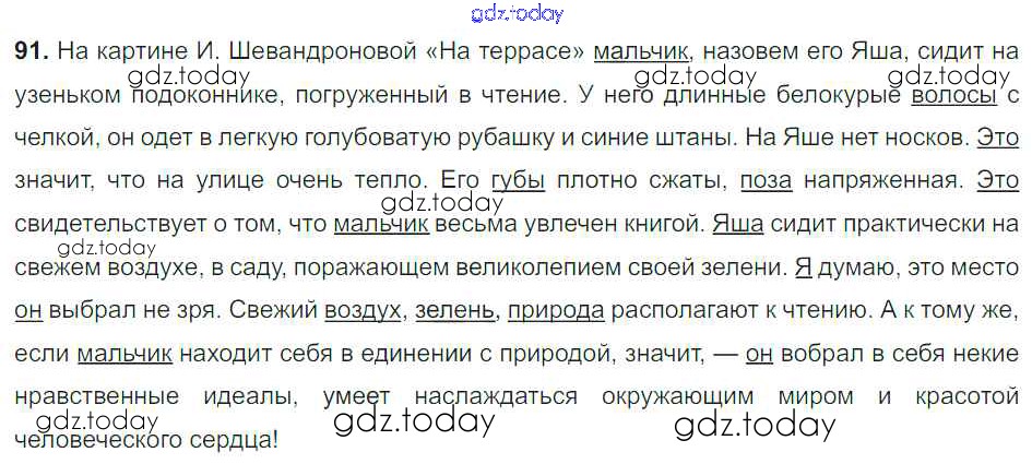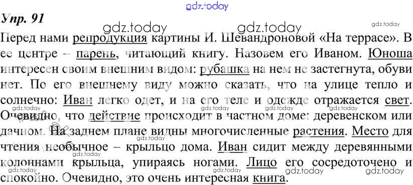 На страницах сайта gdz.today вы найдете учебный и вспомогательный материал, направленный на улучшения знаний школьной программы. ГДЗ - онлайн мир знаний Решение к упражнениям 91 Учебнику по Русскому языку для 8 класса Тростенцова, Ладыженская Просвещение 2014