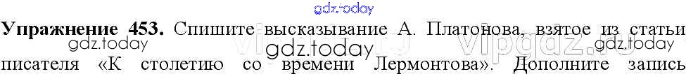 На страницах сайта gdz.today вы найдете учебный и вспомогательный материал, направленный на улучшения знаний школьной программы. ГДЗ - онлайн мир знаний Решение к упражнениям 453 Учебнику по Русскому языку для 8 класса Тростенцова, Ладыженская Просвещение 2014