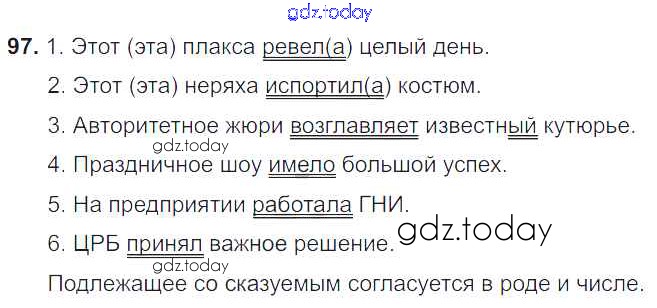 На страницах сайта gdz.today вы найдете учебный и вспомогательный материал, направленный на улучшения знаний школьной программы. ГДЗ - онлайн мир знаний Решение к упражнениям 97 Учебнику по Русскому языку для 8 класса Тростенцова, Ладыженская Просвещение 2014