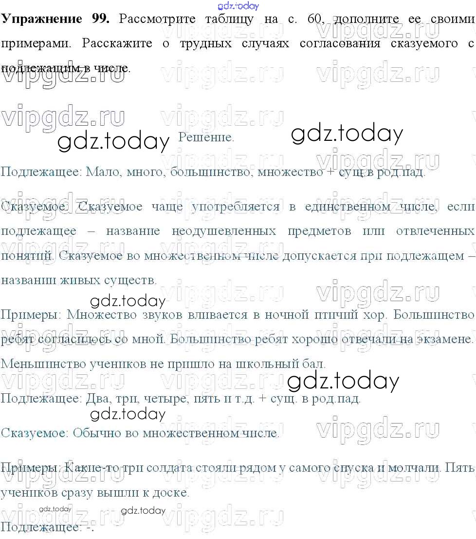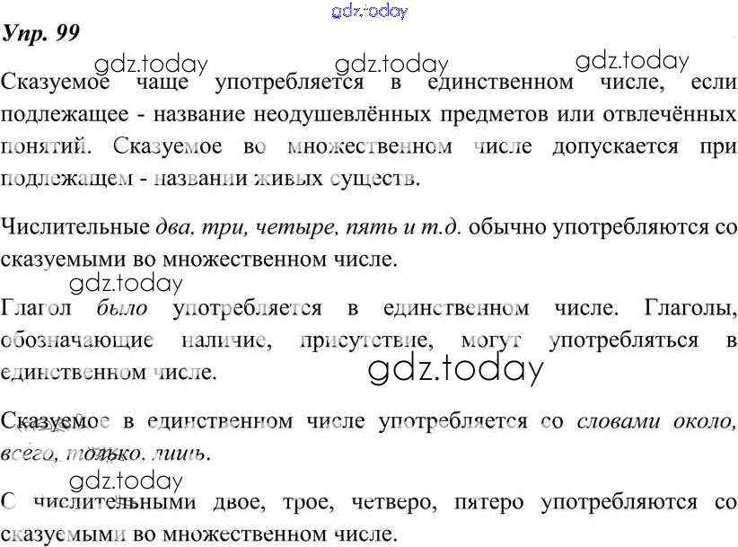 На страницах сайта gdz.today вы найдете учебный и вспомогательный материал, направленный на улучшения знаний школьной программы. ГДЗ - онлайн мир знаний Решение к упражнениям 99 Учебнику по Русскому языку для 8 класса Тростенцова, Ладыженская Просвещение 2014
