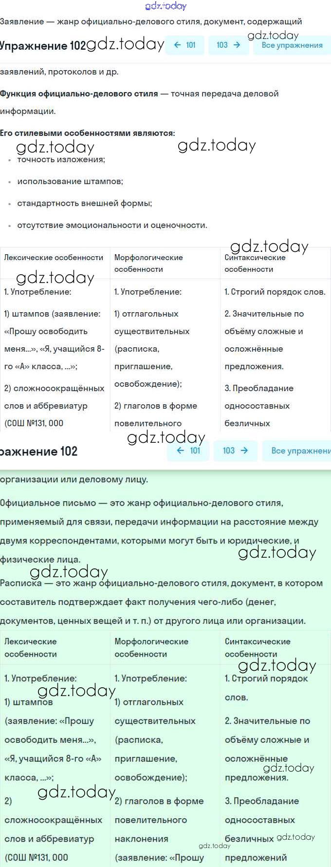 На страницах сайта gdz.today вы найдете учебный и вспомогательный материал, направленный на улучшения знаний школьной программы. ГДЗ - онлайн мир знаний Решение. Глава 3. Роль русского языка в Российской Федерации 102 Учебнику по Русскому языку для 8 класса Шмелёв, Флоренская Вентана-граф Алгоритм успеха 2019