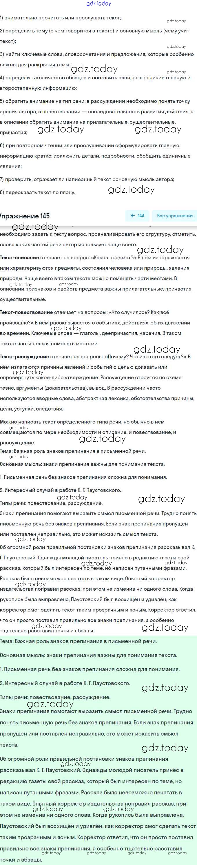 На страницах сайта gdz.today вы найдете учебный и вспомогательный материал, направленный на улучшения знаний школьной программы. ГДЗ - онлайн мир знаний Решение. Глава 3. Роль русского языка в Российской Федерации 145 Учебнику по Русскому языку для 8 класса Шмелёв, Флоренская Вентана-граф Алгоритм успеха 2019