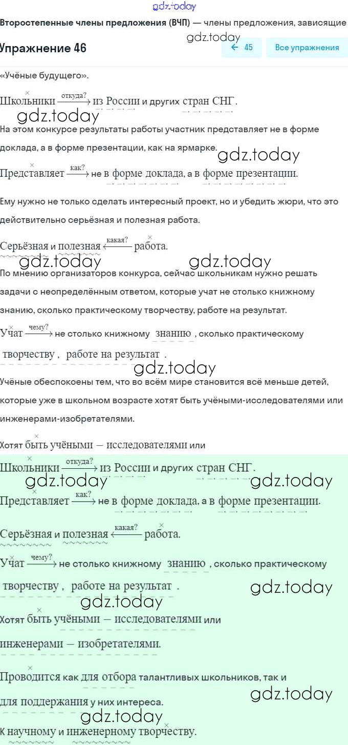 На страницах сайта gdz.today вы найдете учебный и вспомогательный материал, направленный на улучшения знаний школьной программы. ГДЗ - онлайн мир знаний Решение. Глава 3. Роль русского языка в Российской Федерации 46 Учебнику по Русскому языку для 8 класса Шмелёв, Флоренская Вентана-граф Алгоритм успеха 2019