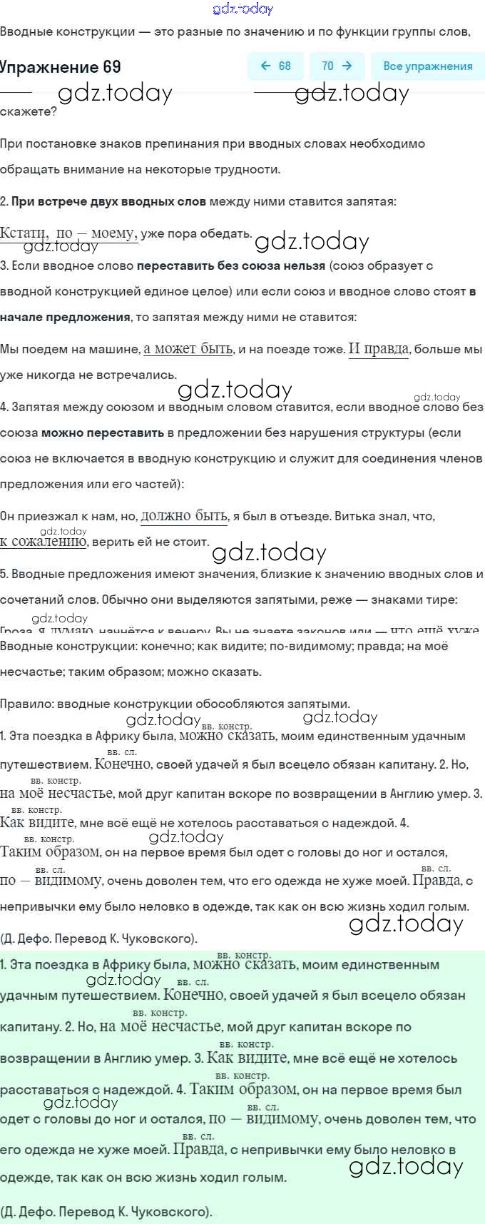 На страницах сайта gdz.today вы найдете учебный и вспомогательный материал, направленный на улучшения знаний школьной программы. ГДЗ - онлайн мир знаний Решение. Глава 3. Роль русского языка в Российской Федерации 69 Учебнику по Русскому языку для 8 класса Шмелёв, Флоренская Вентана-граф Алгоритм успеха 2019