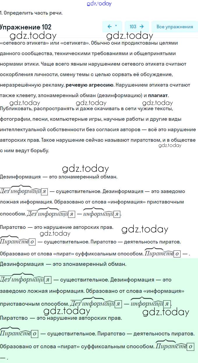 На страницах сайта gdz.today вы найдете учебный и вспомогательный материал, направленный на улучшения знаний школьной программы. ГДЗ - онлайн мир знаний Решение. Глава 4. Русский язык — мировой язык 102 Учебнику по Русскому языку для 8 класса Шмелёв, Флоренская Вентана-граф Алгоритм успеха 2019