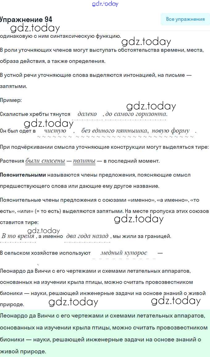 На страницах сайта gdz.today вы найдете учебный и вспомогательный материал, направленный на улучшения знаний школьной программы. ГДЗ - онлайн мир знаний Решение. Глава 4. Русский язык — мировой язык 94 Учебнику по Русскому языку для 8 класса Шмелёв, Флоренская Вентана-граф Алгоритм успеха 2019