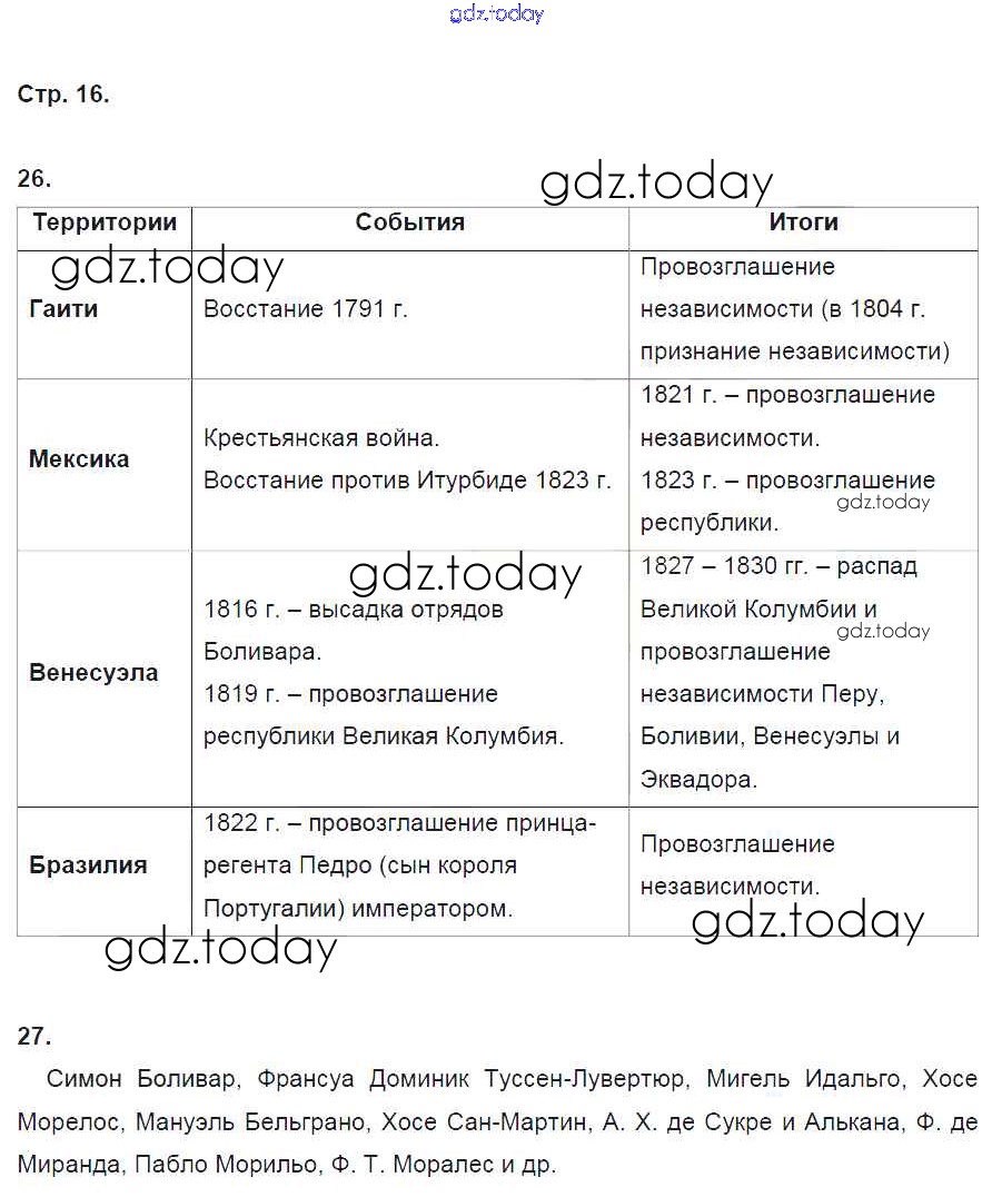 На страницах сайта gdz.today вы найдете учебный и вспомогательный материал, направленный на улучшения знаний школьной программы. ГДЗ - онлайн мир знаний Страницы (решение) 16 Рабочей тетради по Всеобщей истории для 8 класса Ермакова Русское слово Инновационная школа 2017