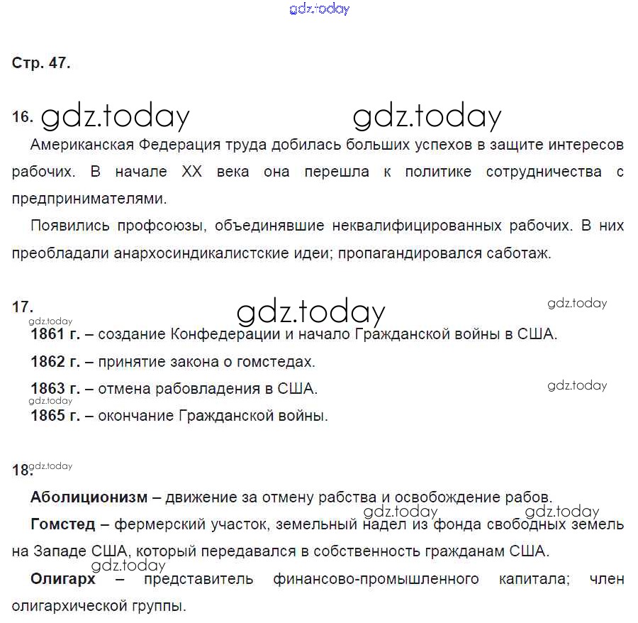 На страницах сайта gdz.today вы найдете учебный и вспомогательный материал, направленный на улучшения знаний школьной программы. ГДЗ - онлайн мир знаний Страницы (решение) 47 Рабочей тетради по Всеобщей истории для 8 класса Ермакова Русское слово Инновационная школа 2017