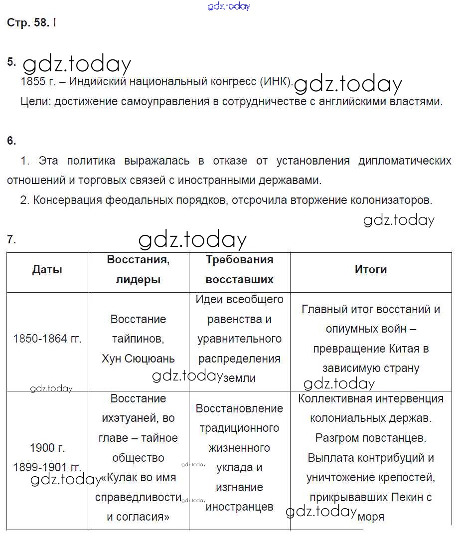 На страницах сайта gdz.today вы найдете учебный и вспомогательный материал, направленный на улучшения знаний школьной программы. ГДЗ - онлайн мир знаний Страницы (решение) 58 Рабочей тетради по Всеобщей истории для 8 класса Ермакова Русское слово Инновационная школа 2017