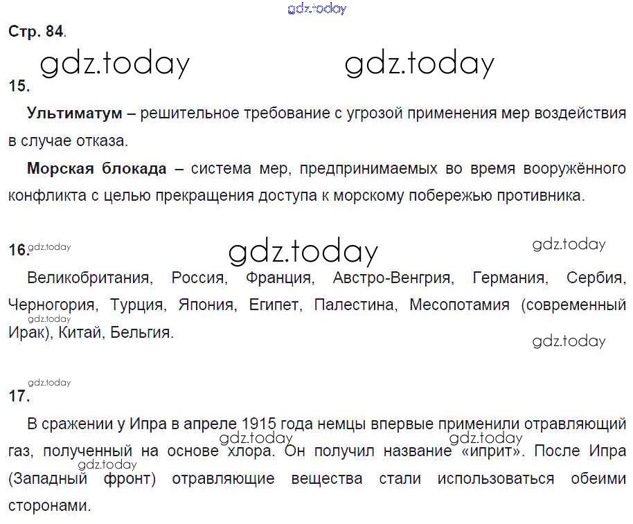 На страницах сайта gdz.today вы найдете учебный и вспомогательный материал, направленный на улучшения знаний школьной программы. ГДЗ - онлайн мир знаний Страницы (решение) 84 Рабочей тетради по Всеобщей истории для 8 класса Ермакова Русское слово Инновационная школа 2017