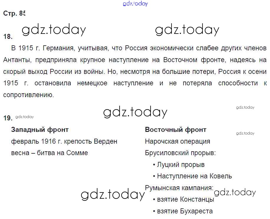 На страницах сайта gdz.today вы найдете учебный и вспомогательный материал, направленный на улучшения знаний школьной программы. ГДЗ - онлайн мир знаний Страницы (решение) 85 Рабочей тетради по Всеобщей истории для 8 класса Ермакова Русское слово Инновационная школа 2017
