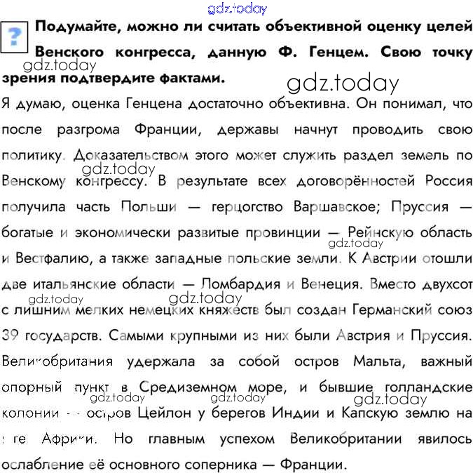 На страницах сайта gdz.today вы найдете учебный и вспомогательный материал, направленный на улучшения знаний школьной программы. ГДЗ - онлайн мир знаний Страницы (решение) 109 Учебнику по Всеобщей истории для 8 класса Юдовская, Баранов Просвещение 2019