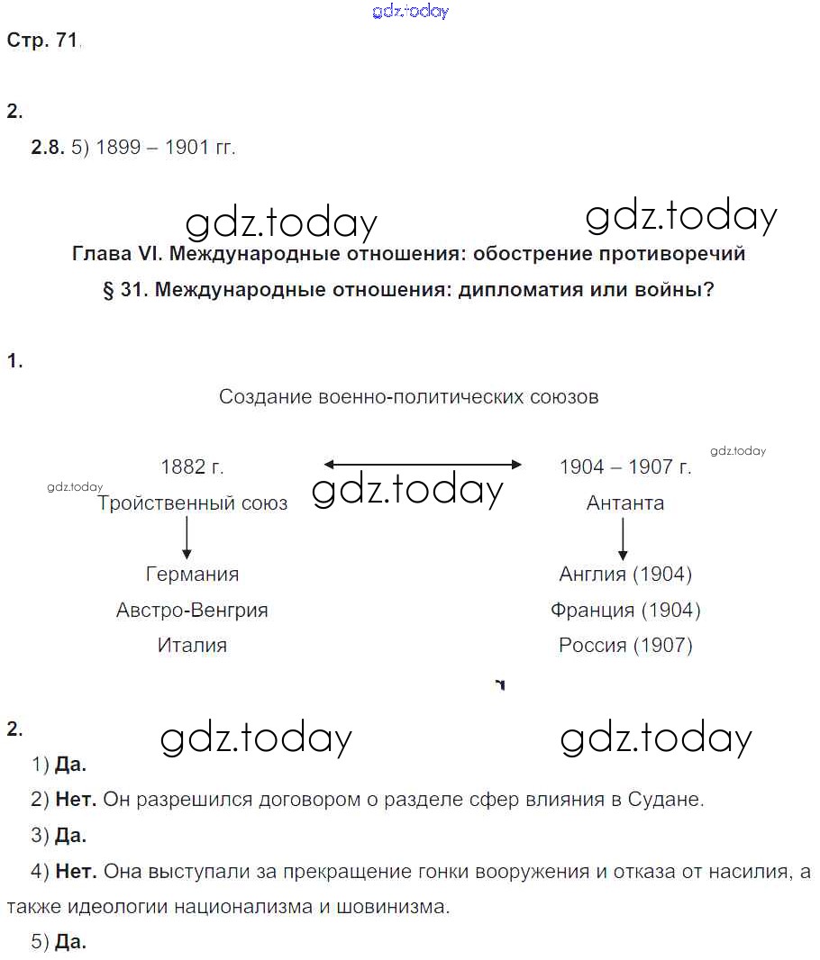 На страницах сайта gdz.today вы найдете учебный и вспомогательный материал, направленный на улучшения знаний школьной программы. ГДЗ - онлайн мир знаний Решение к части 2. Страницы 71 Рабочей тетради по Всеобщей истории для 8 класса Юдовская, Ванюшкина Просвещение УМК 2017