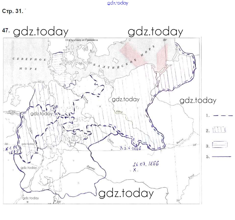 На страницах сайта gdz.today вы найдете учебный и вспомогательный материал, направленный на улучшения знаний школьной программы. ГДЗ - онлайн мир знаний Страницы (решение) 31 Рабочей тетради с контурными картами по Всеобщей истории для 8 класса Волкова, Пономарев Дрофа УМК 2018