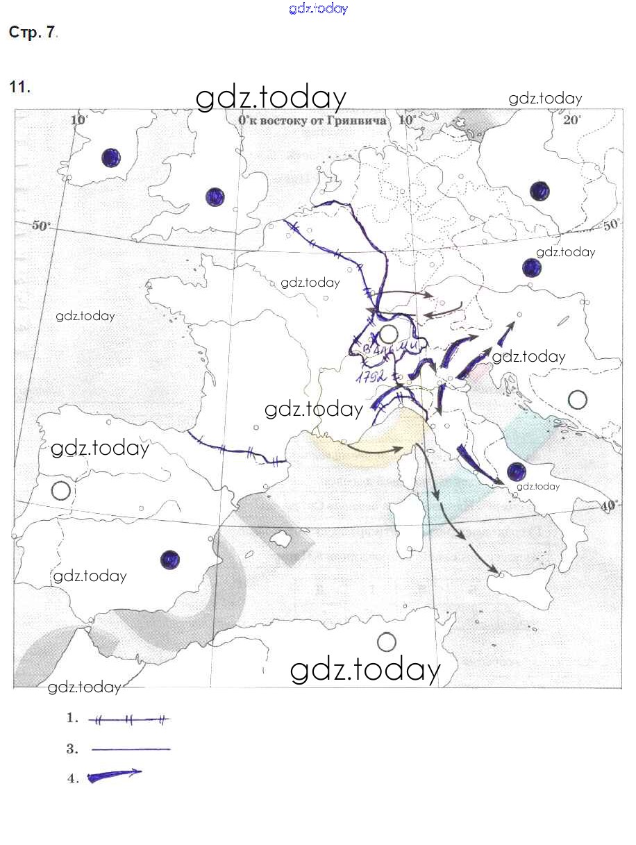 На страницах сайта gdz.today вы найдете учебный и вспомогательный материал, направленный на улучшения знаний школьной программы. ГДЗ - онлайн мир знаний Страницы (решение) 7 Рабочей тетради с контурными картами по Всеобщей истории для 8 класса Волкова, Пономарев Дрофа УМК 2018