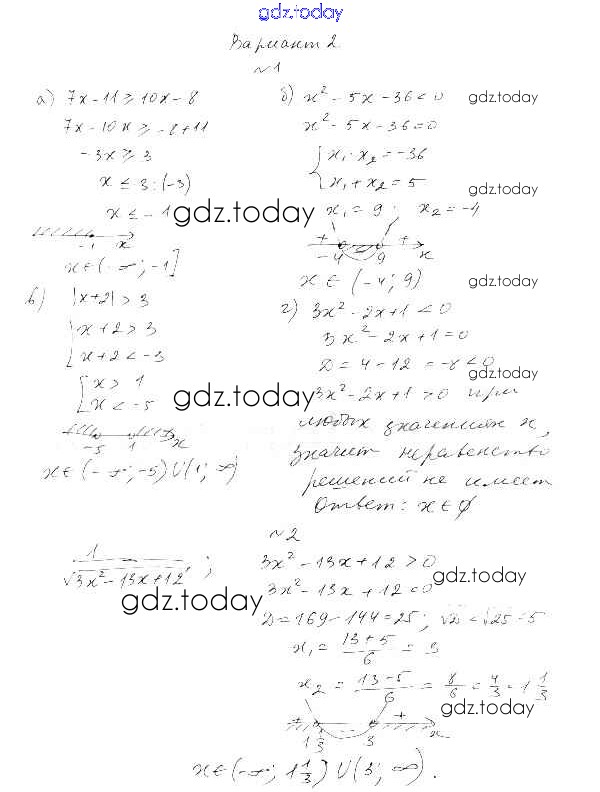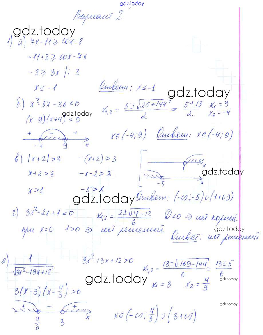 На страницах сайта gdz.today вы найдете учебный и вспомогательный материал, направленный на улучшения знаний школьной программы. ГДЗ - онлайн мир знаний СР-1. Линейные и квадратные неравенства Решение к теме 1. Неравенства и системы неравенств вариант 2 Самостоятельным работам по Алгебре для 9 класса Александрова Базовый уровень Мнемозина УМК 2016
