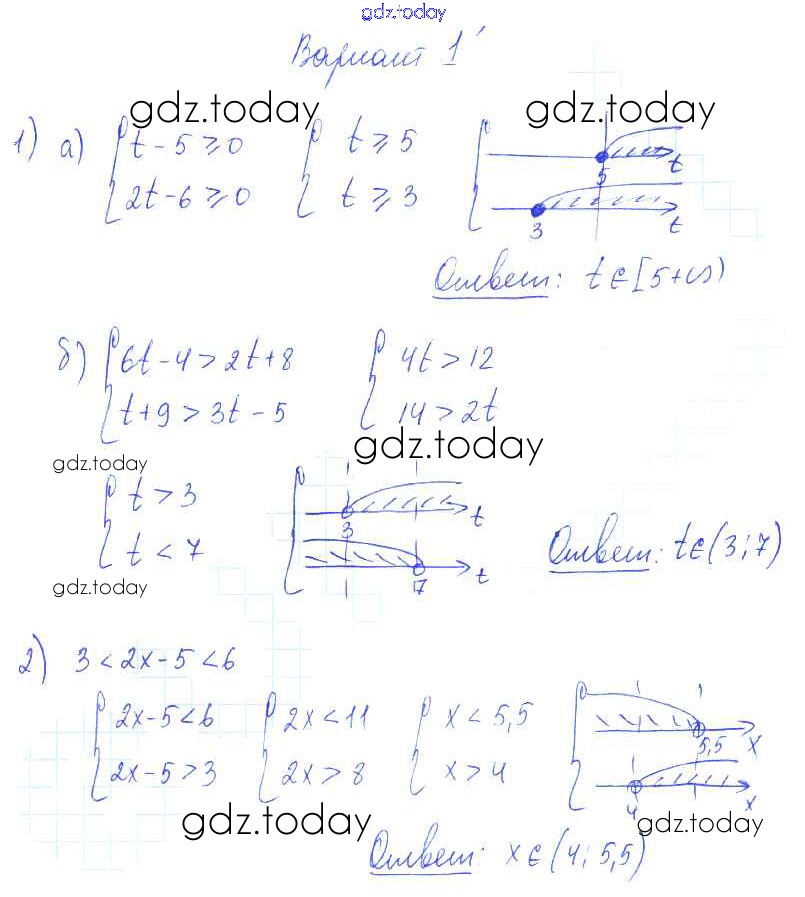 Ответы к СР-5. Системы рациональных неравенств Решение к теме 1. Неравенства и системы неравенств вариант 1 Самостоятельным работам по Алгебре для 9 класса Александрова Базовый уровень Мнемозина УМК 2016
