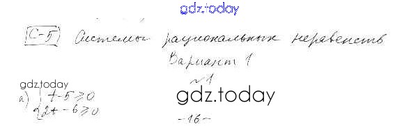На страницах сайта gdz.today вы найдете учебный и вспомогательный материал, направленный на улучшения знаний школьной программы. ГДЗ - онлайн мир знаний СР-5. Системы рациональных неравенств Решение к теме 1. Неравенства и системы неравенств вариант 1 Самостоятельным работам по Алгебре для 9 класса Александрова Базовый уровень Мнемозина УМК 2016