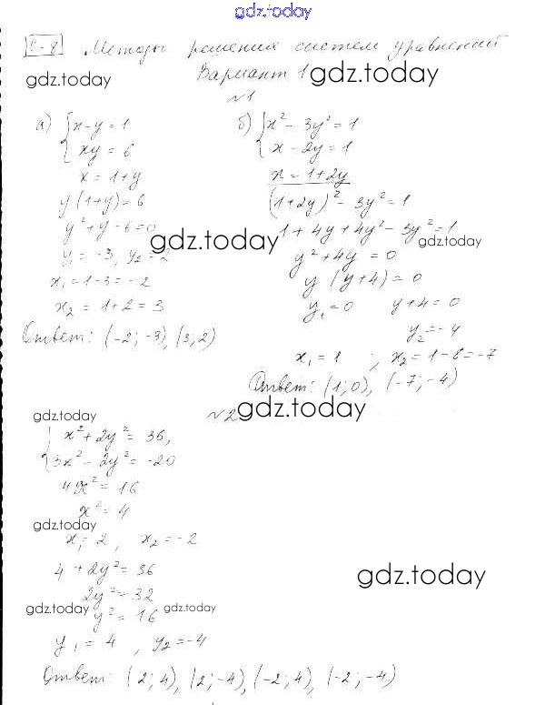На страницах сайта gdz.today вы найдете учебный и вспомогательный материал, направленный на улучшения знаний школьной программы. ГДЗ - онлайн мир знаний СР-8. Методы решения систем уравнений Решение к теме 2. Системы уравнений вариант 1 Самостоятельным работам по Алгебре для 9 класса Александрова Базовый уровень Мнемозина УМК 2016
