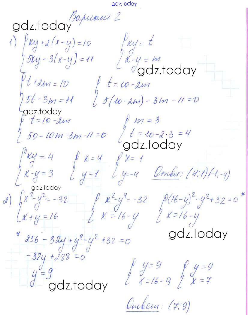 Ответы к СР-9. Методы решения систем уравнений Решение к теме 2. Системы уравнений вариант 2 Самостоятельным работам по Алгебре для 9 класса Александрова Базовый уровень Мнемозина УМК 2016