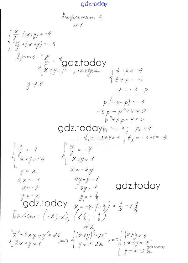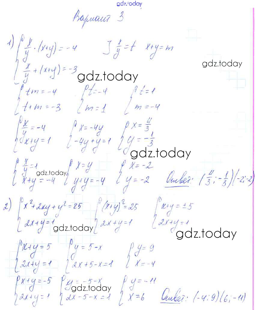 Ответы к СР-9. Методы решения систем уравнений Решение к теме 2. Системы уравнений вариант 3 Самостоятельным работам по Алгебре для 9 класса Александрова Базовый уровень Мнемозина УМК 2016