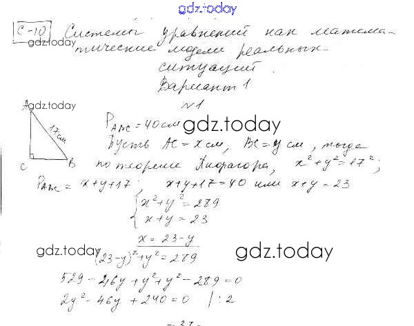 На страницах сайта gdz.today вы найдете учебный и вспомогательный материал, направленный на улучшения знаний школьной программы. ГДЗ - онлайн мир знаний СР-10. Системы уравнений как математические модели реальных ситуаций Решение к теме 2. Системы уравнений вариант 1 Самостоятельным работам по Алгебре для 9 класса Александрова Базовый уровень Мнемозина УМК 2016