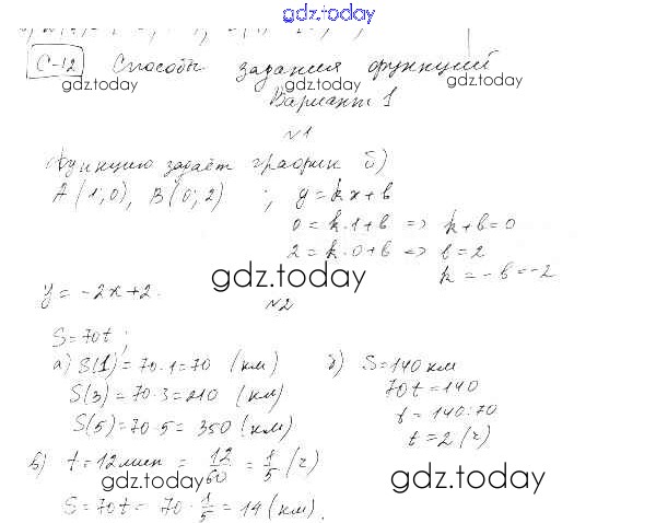 На страницах сайта gdz.today вы найдете учебный и вспомогательный материал, направленный на улучшения знаний школьной программы. ГДЗ - онлайн мир знаний СР-12. Способы задания функций Решение к теме 3. Числовые функции вариант 1 Самостоятельным работам по Алгебре для 9 класса Александрова Базовый уровень Мнемозина УМК 2016