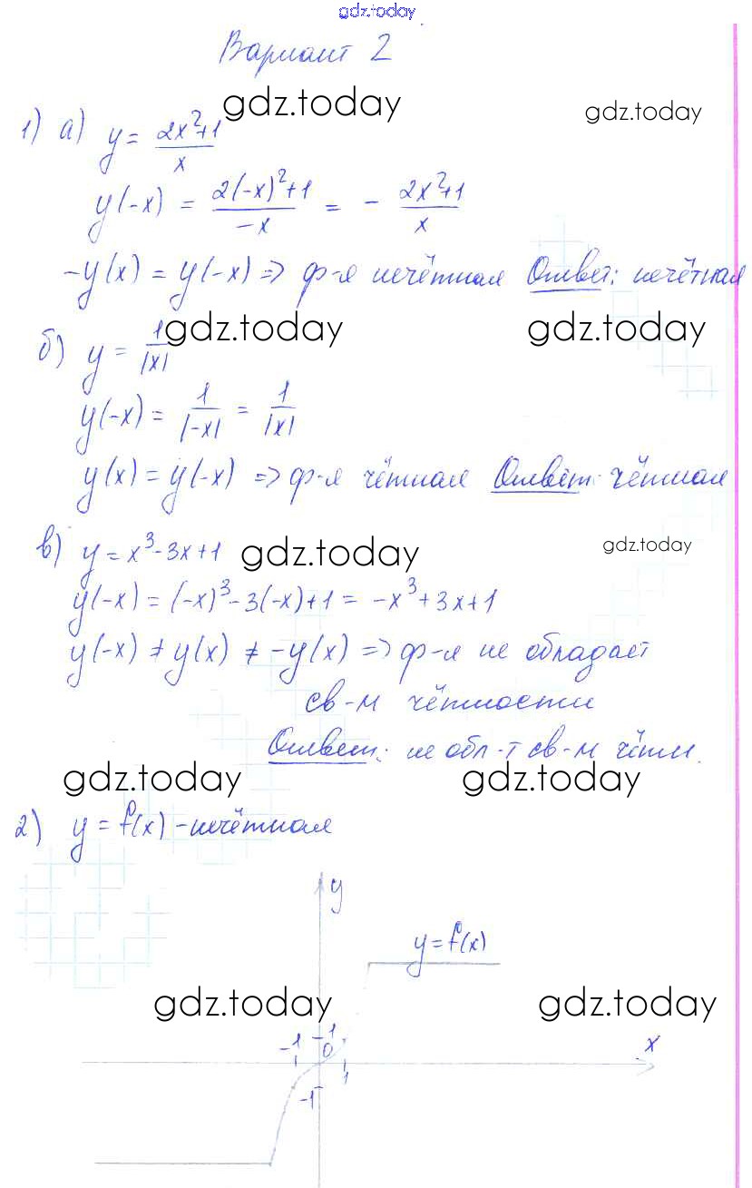 На страницах сайта gdz.today вы найдете учебный и вспомогательный материал, направленный на улучшения знаний школьной программы. ГДЗ - онлайн мир знаний СР-14. Четные и нечетные функции Решение к теме 3. Числовые функции вариант 2 Самостоятельным работам по Алгебре для 9 класса Александрова Базовый уровень Мнемозина УМК 2016