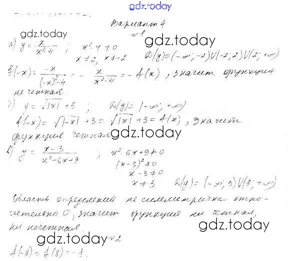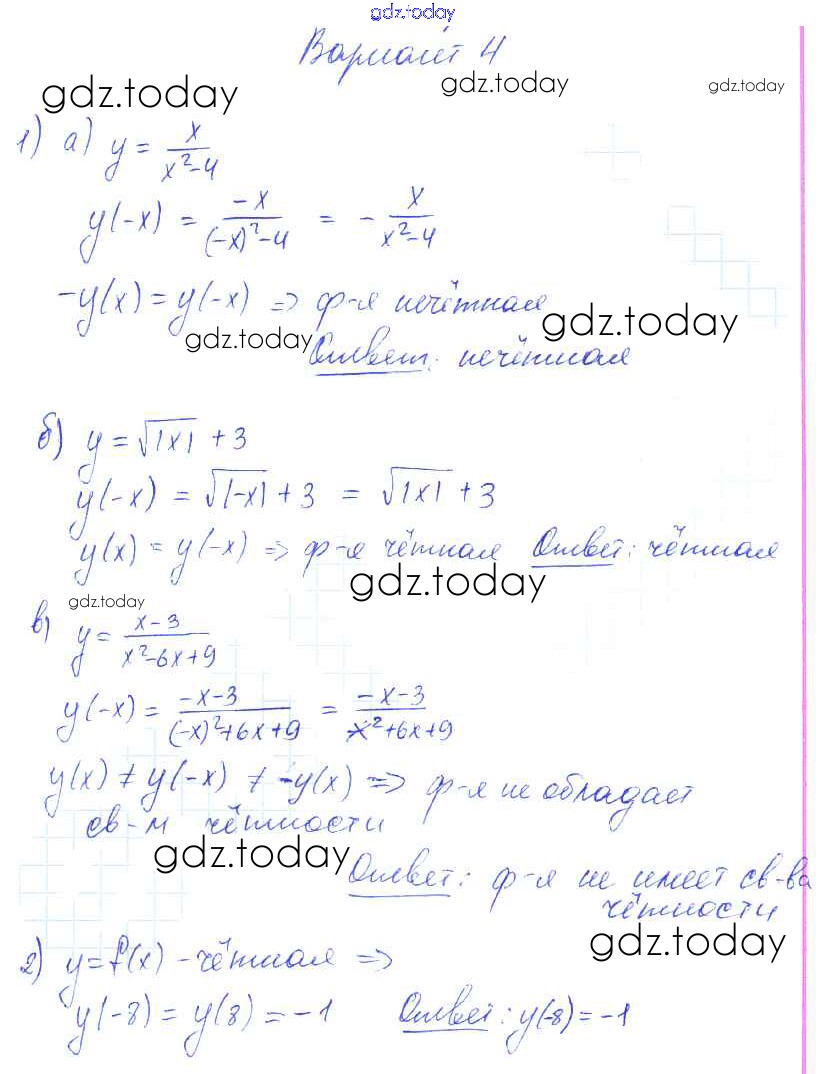 На страницах сайта gdz.today вы найдете учебный и вспомогательный материал, направленный на улучшения знаний школьной программы. ГДЗ - онлайн мир знаний СР-14. Четные и нечетные функции Решение к теме 3. Числовые функции вариант 4 Самостоятельным работам по Алгебре для 9 класса Александрова Базовый уровень Мнемозина УМК 2016