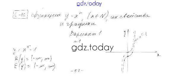 На страницах сайта gdz.today вы найдете учебный и вспомогательный материал, направленный на улучшения знаний школьной программы. ГДЗ - онлайн мир знаний СР-16. Функции y=xn (n ∈ N) их свойства и графики Решение к теме 3. Числовые функции вариант 1 Самостоятельным работам по Алгебре для 9 класса Александрова Базовый уровень Мнемозина УМК 2016