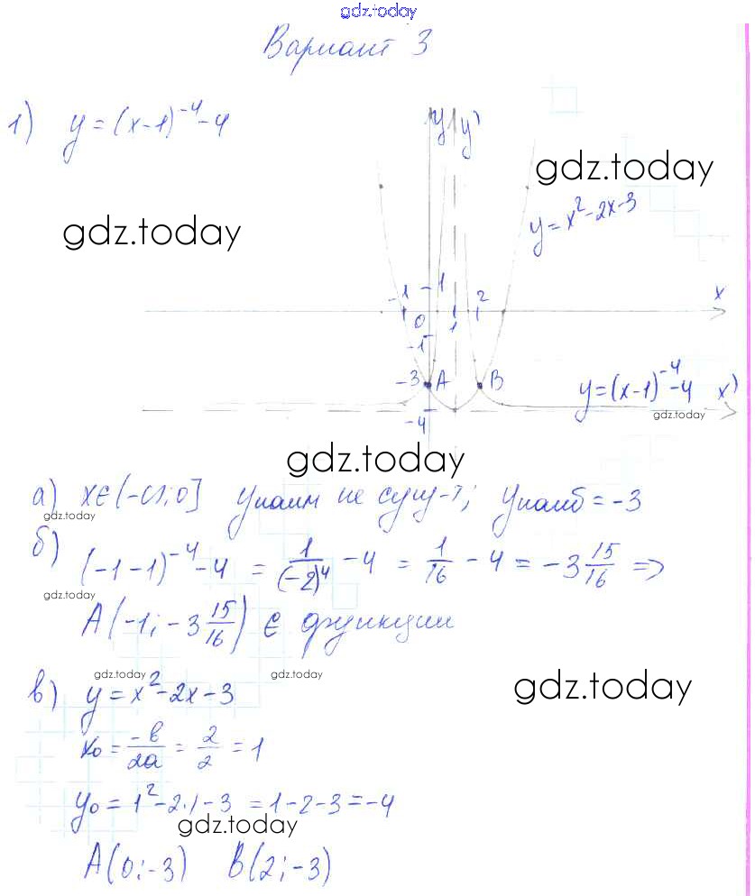 Ответы к СР-17. Функции y=x-n (n ∈ N) их свойства и графики Решение к теме 3. Числовые функции вариант 3 Самостоятельным работам по Алгебре для 9 класса Александрова Базовый уровень Мнемозина УМК 2016