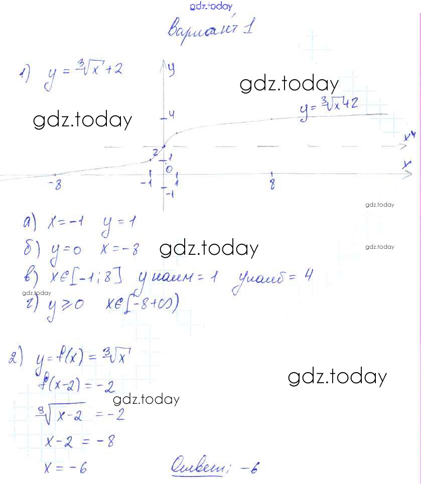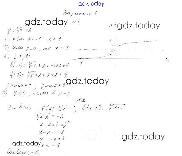 Ответы к СР-19. Функции y=∛x ее свойства и график Решение к теме 3. Числовые функции вариант 1 Самостоятельным работам по Алгебре для 9 класса Александрова Базовый уровень Мнемозина УМК 2016