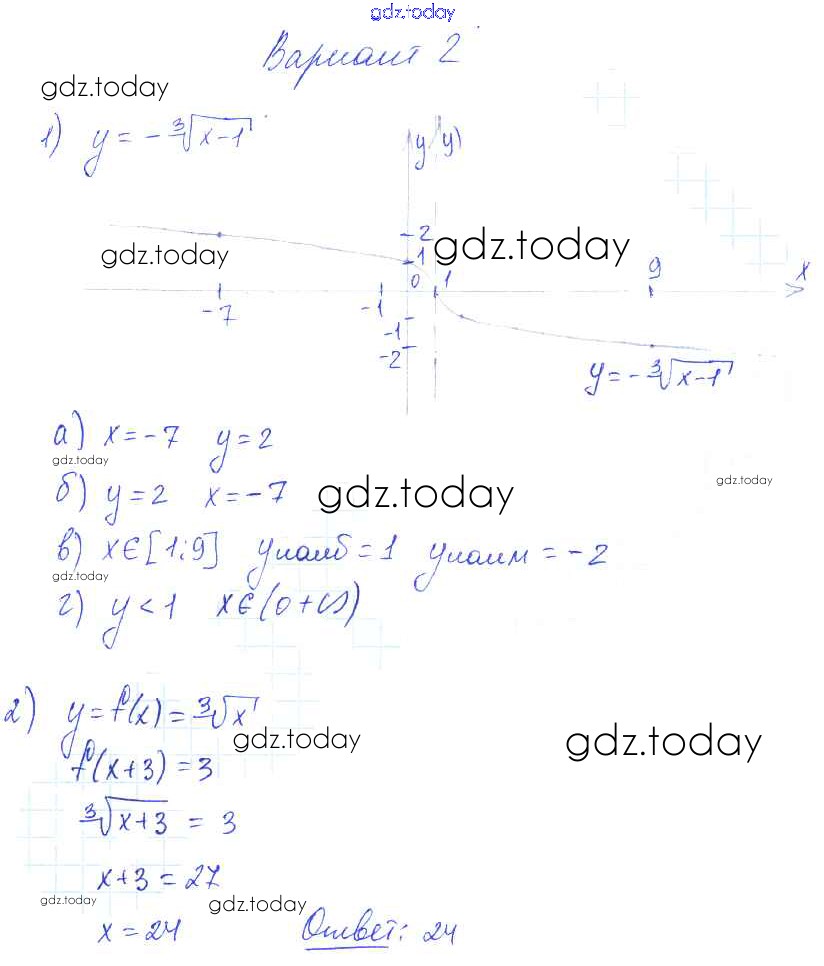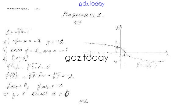 Ответы к СР-19. Функции y=∛x ее свойства и график Решение к теме 3. Числовые функции вариант 2 Самостоятельным работам по Алгебре для 9 класса Александрова Базовый уровень Мнемозина УМК 2016