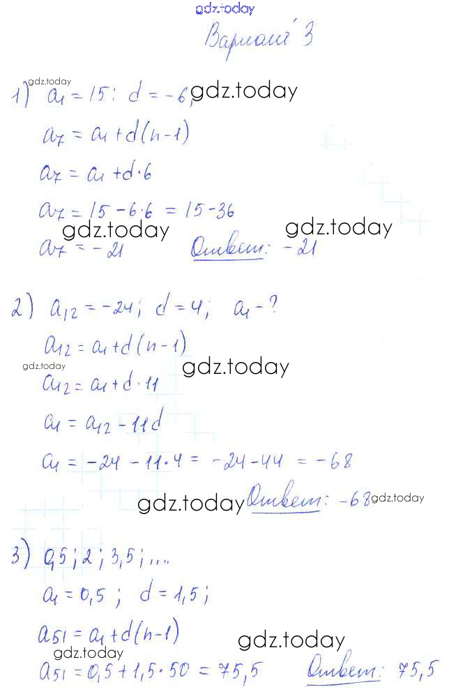 На страницах сайта gdz.today вы найдете учебный и вспомогательный материал, направленный на улучшения знаний школьной программы. ГДЗ - онлайн мир знаний СР-22. Арифметическая прогрессия Решение к теме 4. Прогрессии вариант 3 Самостоятельным работам по Алгебре для 9 класса Александрова Базовый уровень Мнемозина УМК 2016