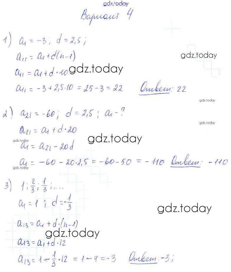 На страницах сайта gdz.today вы найдете учебный и вспомогательный материал, направленный на улучшения знаний школьной программы. ГДЗ - онлайн мир знаний СР-22. Арифметическая прогрессия Решение к теме 4. Прогрессии вариант 4 Самостоятельным работам по Алгебре для 9 класса Александрова Базовый уровень Мнемозина УМК 2016