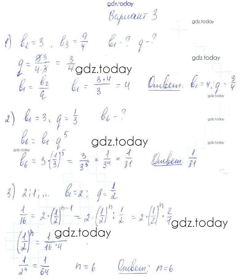 Ответы к СР-25. Геометрическая прогрессия Решение к теме 4. Прогрессии вариант 3 Самостоятельным работам по Алгебре для 9 класса Александрова Базовый уровень Мнемозина УМК 2016