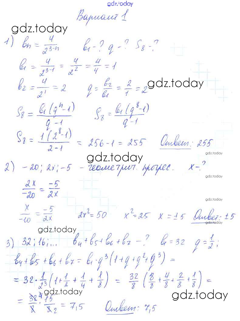 Ответы к СР-26. Геометрическая прогрессия Решение к теме 4. Прогрессии вариант 1 Самостоятельным работам по Алгебре для 9 класса Александрова Базовый уровень Мнемозина УМК 2016