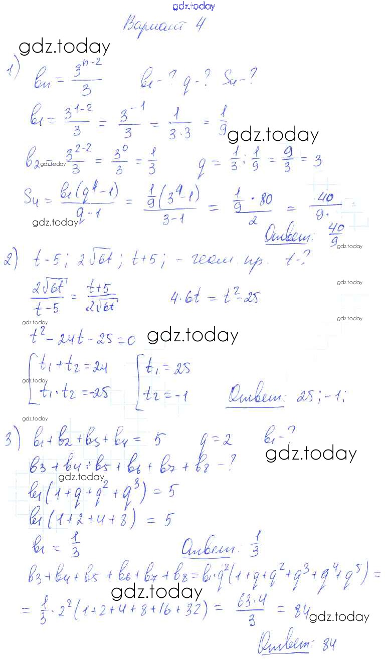 Ответы к СР-26. Геометрическая прогрессия Решение к теме 4. Прогрессии вариант 4 Самостоятельным работам по Алгебре для 9 класса Александрова Базовый уровень Мнемозина УМК 2016