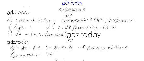 На страницах сайта gdz.today вы найдете учебный и вспомогательный материал, направленный на улучшения знаний школьной программы. ГДЗ - онлайн мир знаний СР-27. Комбинаторные задачи Решение к теме 5. Элементы комбинаторики, статистики и теории вероятностей вариант 3 Самостоятельным работам по Алгебре для 9 класса Александрова Базовый уровень Мнемозина УМК 2016