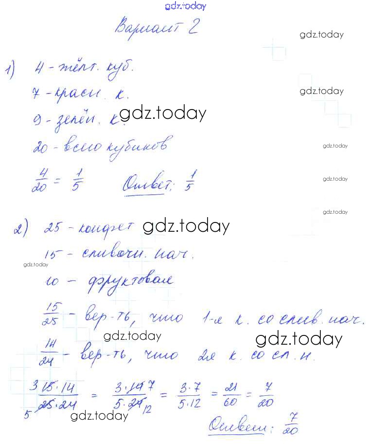 На страницах сайта gdz.today вы найдете учебный и вспомогательный материал, направленный на улучшения знаний школьной программы. ГДЗ - онлайн мир знаний СР-31. Простейшие вероятностные задачи Решение к теме 5. Элементы комбинаторики, статистики и теории вероятностей вариант 2 Самостоятельным работам по Алгебре для 9 класса Александрова Базовый уровень Мнемозина УМК 2016